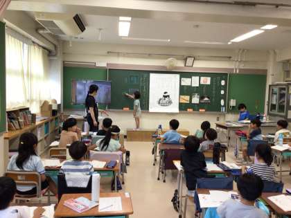 1年生は、カタカナを正しく書き取る学習に取り組んでいました。身近にあるカタカナの言葉を書き順や字形に気を付けてノートに書いています。書き順や字形が「おしい!」子はお手本と見比べて書き直していました。学習によく集中していてすばらしかったです。