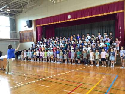 3年生は、20日の音楽発表会に向け、中丸ホールで合唱と合奏のリハーサルです。合唱曲、「Wish」は3年生には難しい曲で、6年生の教科書に載っている曲です。少し背伸びして挑戦する3年生の歌声は、気持ちがこもっていました。のっている3年生の姿を見に来てください。
