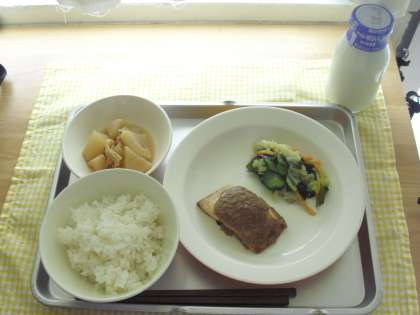 大根と油揚げの含め煮、牛乳です。