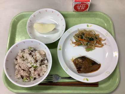 萩ごはん さばのみそ煮 ごま和え りんご 牛乳