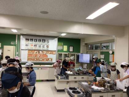 5年生の家庭科は川場移動教室に向け、ごはんとお味噌汁の調理実習でした。保護者の方に安全管理に入っていただいていて感謝いたします。にぼしからだしを取り、ていねいに作ったお味噌汁はとてもおいしかったです。ご飯もふきこぼしがないように常に火加減に気を配っていました。きっと川場で作るカレーライスは大成功だと思います。