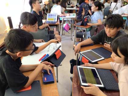 5年生は自由進度学習を進めていますが、理解度に差が大きくなってきたので、はじめに友だちのサポートタイムを設けていました。友だちをサポートし合う中で、学習理解も深まっています。