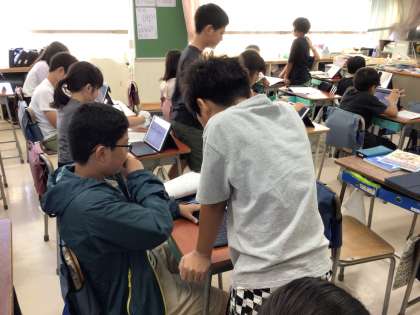今日は、5年生の家庭科、4年生の道徳、6年生の道徳、5年生の算数、4年生の理科の授業を見ました。