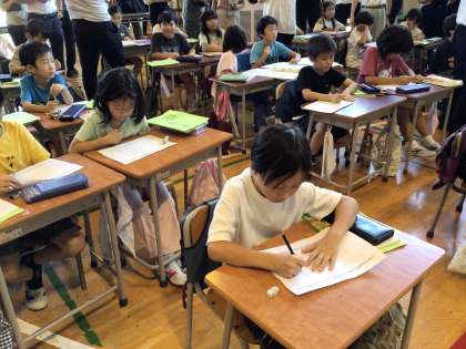 今日の5時間目、世田谷区の国語部の先生たちが中丸ホールに集まりました。160名以上の先生方に、2年生の子どもたちが「がまくん」「かえるくん」に自分の気持ちを書く様子を見てもらいました。手紙をていねいに書き、発表する子どもたち。大勢のお客さんがいましたが、いつもと同じように一生懸命に学習に取り組んでいて、うれしかったです。