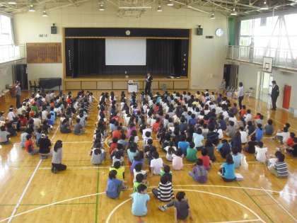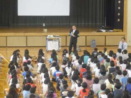 世田谷警察署の方を講師としてお招きし、5校時には低学年を対象に、6校時には高学年を対象に行いました。