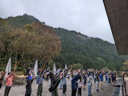 曇り空ですが、村めぐりはできそうです。名残惜しいですが、川場村での最後の時間を楽しみます。朝会の後、食事係さんはすばやく準備に取り掛かっています。ありがとう!