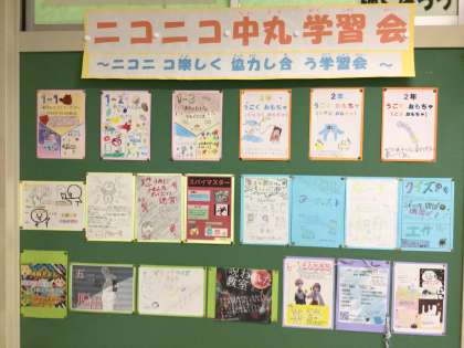 「明日が楽しみすぎる!!」とどのクラスも明日からの「ニコニコ中丸学習会」に向けて準備をしています。お客さんが喜んでくれるようにと、学習したことを楽しめる内容に変え、自分たちで企画を考え実現にこぎつけました。特に、6年生はお世話になっている地域の人に喜んでもらえるようにと考え、オリジナルのお祭り、アップサイクル商品の開発、規格外野菜の活用スイーツなどを発表展示だけでなく、来校された保護者の方や地域の方に販売まで行います。明日は児童鑑賞日、9日が保護者鑑賞日です。中丸の子どもたちの「やってみたい!」という思いにあふれた「ニコニコ中丸学習会」にお越しください。