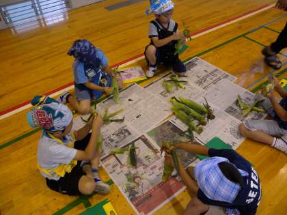 この給食のために、2年生がとうもろこしの皮むきをしてくれました。