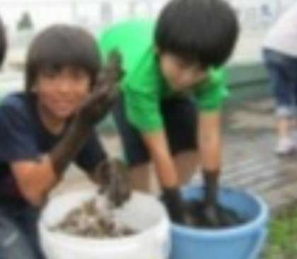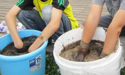水をたっぷり入れて空気と混ぜ込むように「田んぼづくり」をしました。