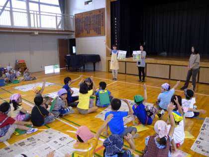 「うんとこしょ、どっこいしょ」の掛け声に合わせ、みんなできれいにむきました。