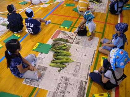 とうもろこしは、蒸しとうもろこしとして、全校児童の給食に並びました。