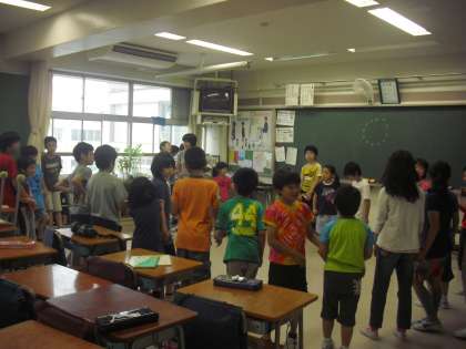 中には、来週のたてわりゲーム集会に向けてボール送りの練習を