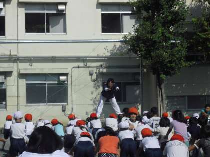 9月5日(水)の体育朝会は、スポーツインストラクターの講師を招いて