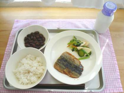 今日の献立は、さんまのかば焼き風、かぶのレモン漬、煮豆、
