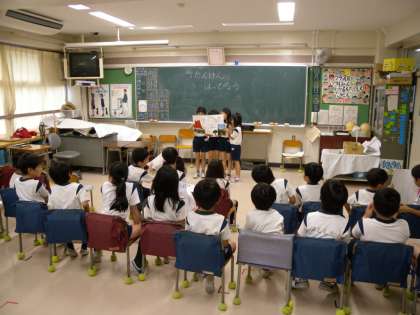 発表をするために、画用紙に要点をまとめたり、原稿用紙に台本を書いたりして、