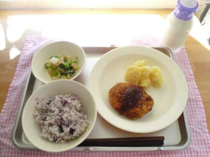 白菜中華あえ、粉ふきいも、牛乳です。