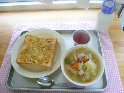 今日の献立は、ツナトースト、白いんげんの田舎風スープ、