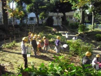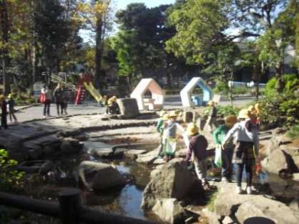 生活科の学習で「秋探し」をするため、鶴ヶ久保公園の探検に行きました。