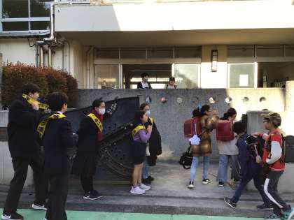 1学期から中丸小代表委員児童の子どもたちは、自主的に朝のあいさつ運動を続けていて、本当にすばらしく思います。今日はひときわ元気な声で中丸小の先輩と一緒にあいさつを呼びかけていました。