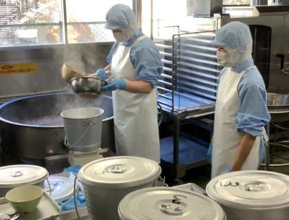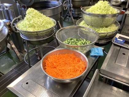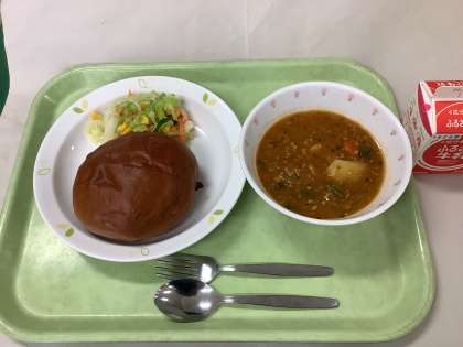 チョコチップパン ハンガリアンシチュー コーンサラダ 牛乳