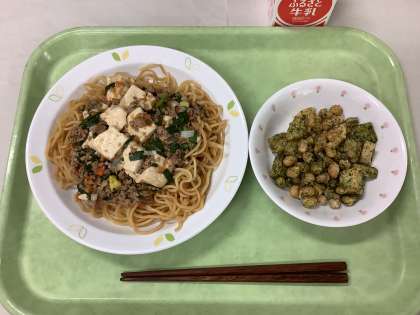 マーボー豆腐焼きそば のりじゃが豆 牛乳