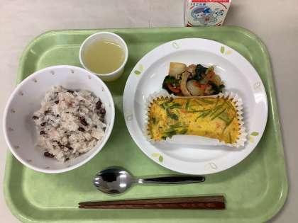 今日は小正月です。小正月には、健康を願いあずき粥を食べる風習があります。給食では、あずき粥の代わりに、あずきごはんを炊きました。