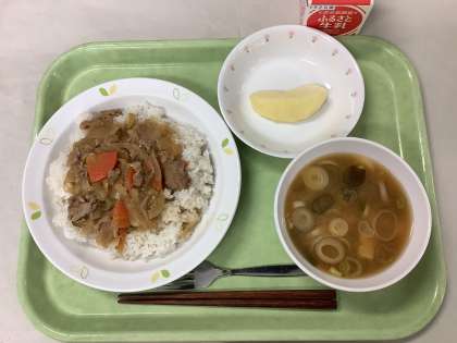 おろし豚丼 豆腐とわかめのみそ汁 りんご 牛乳