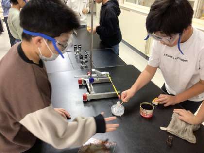 アルコールランプに火を付け、金属の温度変化の様子を示温テープの色の変化で確かめる実験をしていました。安全に留意し取り組んでいます。3学期から、4年生は次年度に向け、教科担任制のお試しを行っています。担任でない先生が理科の学習をしていますが、どの先生の授業でも集中して取り組めています。担当の先生も実験の準備に集中して取り組めるのでとてもいいです。