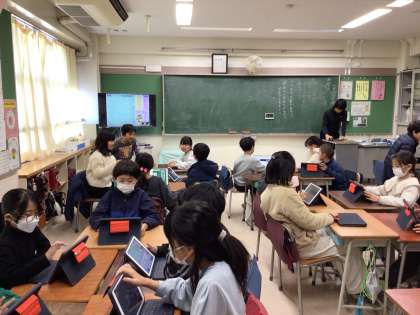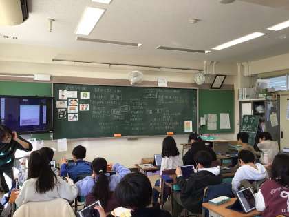 3年生は、様子や気持ちが伝わる伝え方を班で話し合い、自分の考えを整理し、よりよい伝え方にするために大切なことをロイロノートで作成していました。キーボード入力で思った以上の長文を作成できる子が多くいました。班の友だちが作成した文章のよさを「納得!」「いいね!」と称賛し合える子どもたちです。