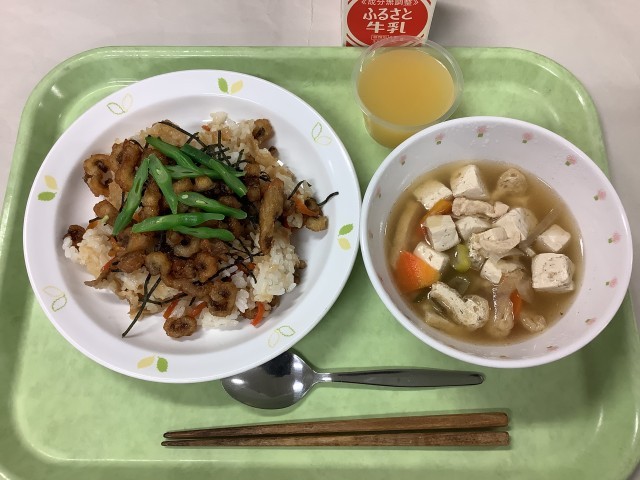 あなごのちらしずし 吉野汁 ピーチゼリー 牛乳