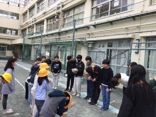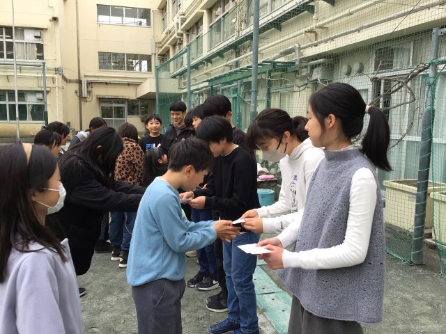 今日はたてわり班遊び(1・4・6年)も最後でした。仲良く遊んだ後、お世話になった6年生にお礼のメッセージを渡すことができました。カードをもらった6年生はとてもうれしそうでした。下学年にやさしい中丸の伝統も引き継がれていきます。
