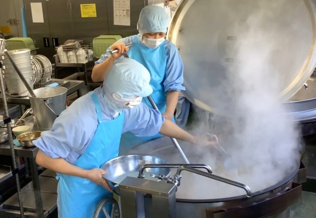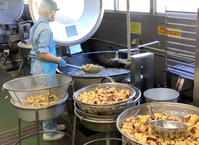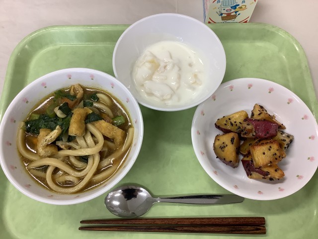 カレーうどん 大学芋 りんごヨーグルト 牛乳