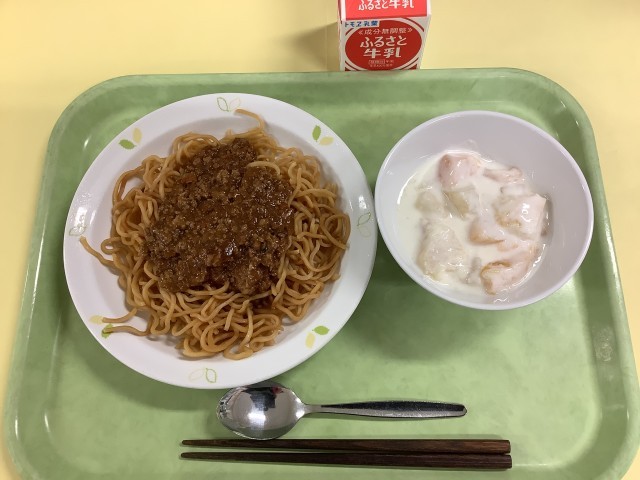 ジャージャー麺 フルーツヨーグルト 牛乳