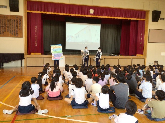 0430 体育朝会&パブリックシアターさん出前授業&自転車安全教室