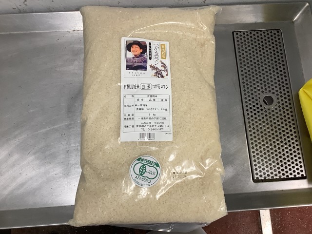 今日のごはんは有機米です。青森県あきもと農園さんの「つがるロマン」です。