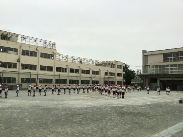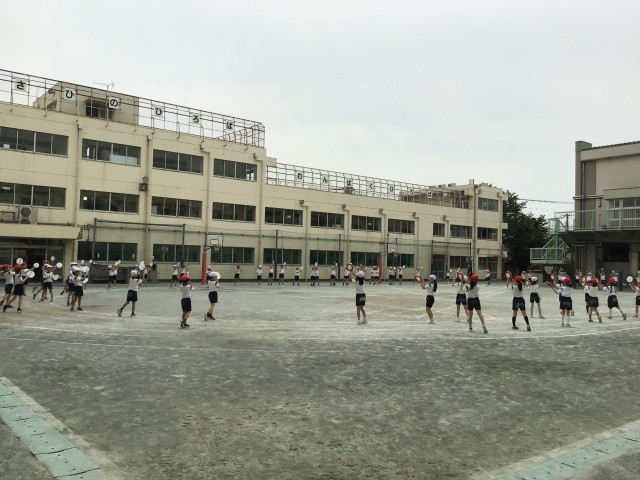 中休み、応援団が校庭で応援合戦の練習を行っていました。赤白それぞれの団長の学ランがかっこいいです。明日は全校児童で応援合戦の練習をします。