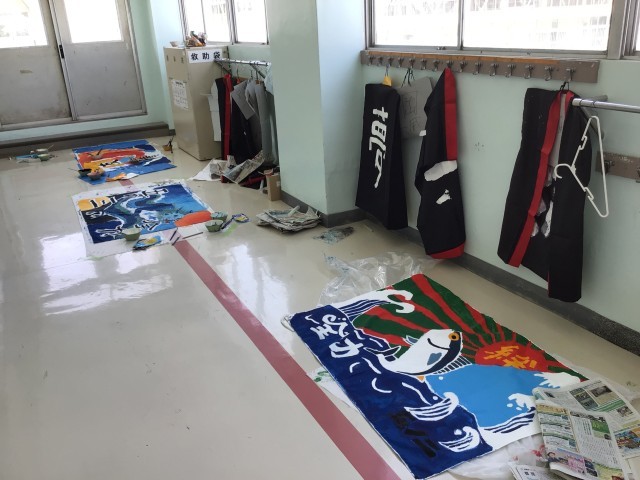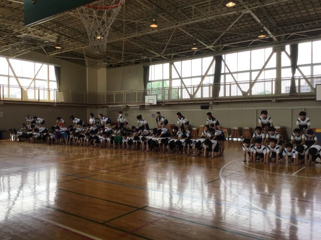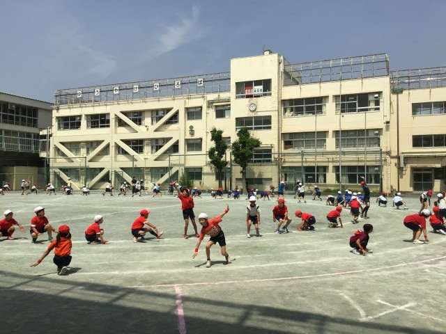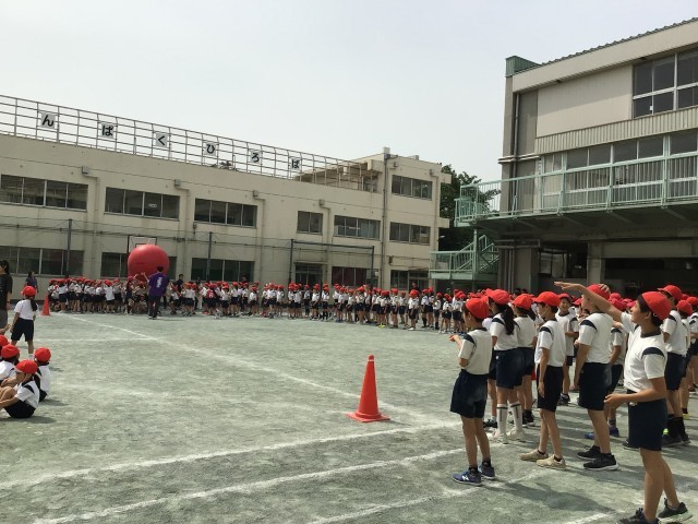 1時間目は、大玉送りの2回目の練習、その後、校庭では各学年が小道具を身に付け表現運動の仕上げに取り組んでいました。