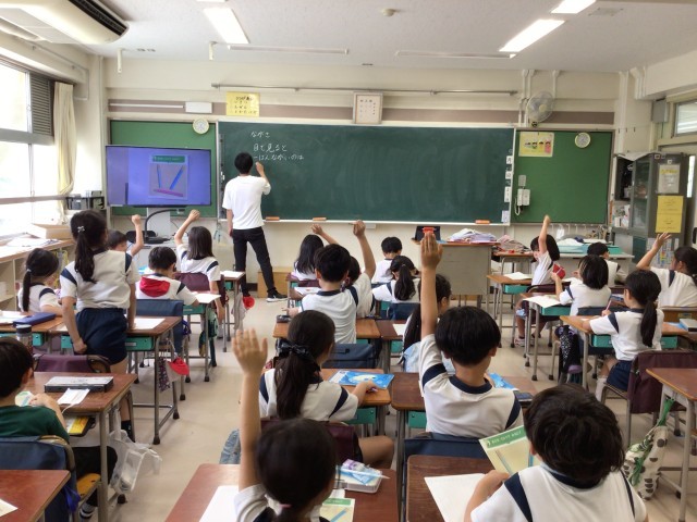 3時間目に2年生の算数、4時間目に6年生の理科、5時間目に3年生の理科の授業を見ました。