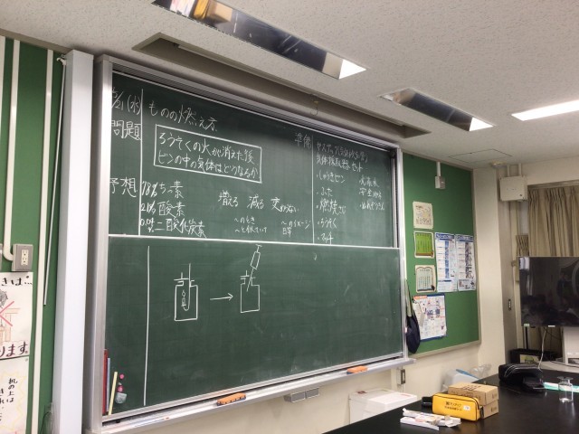 6年生は、燃焼したあとの、窒素・酸素・二酸化炭素の割合の変化を予想していました。前時までの学習や生活体験を活かし、根拠を持って発言していました。さすが、中丸の6年生です。気体検知管の使い方を学び、次の時間の実験の準備は万端でした。