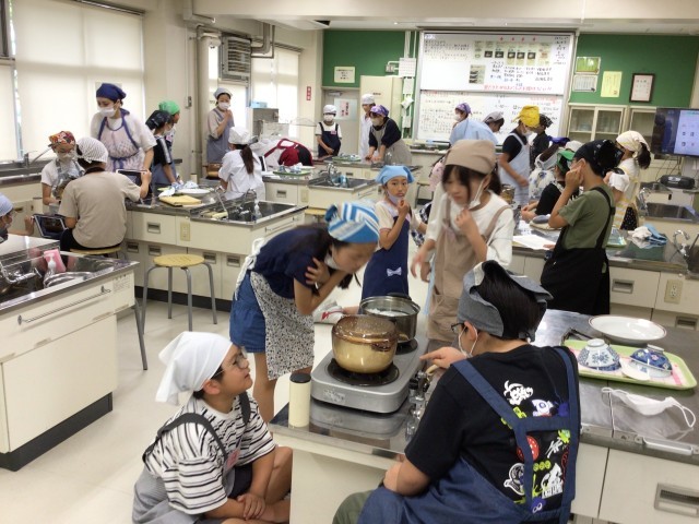 5年生は、ご飯を炊くのですが、なべで炊くのと「アイラップ」を使って炊くの2種類を炊き比べていました。災害時、都市ガスが使えないとき、カセットコンロでご飯を炊くことになります。地域の方にも「アイラップ」で炊く様子を参観していただきました。避難所運営訓練でお伝えしていただけるとうれしいです。