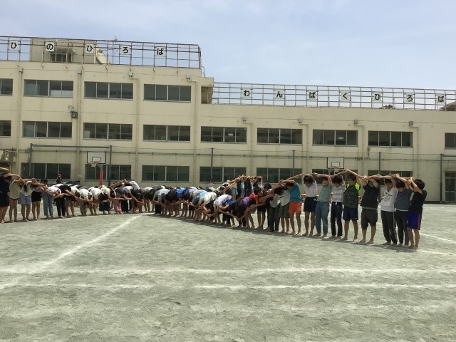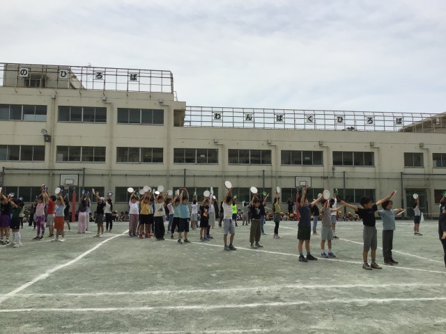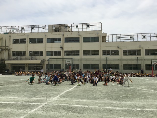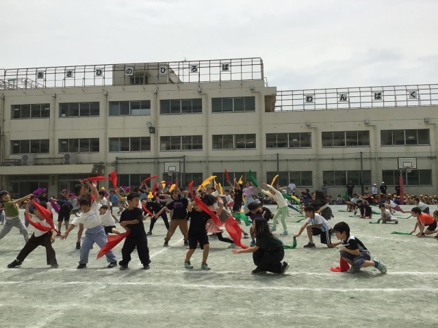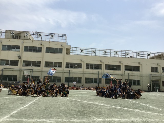 全校児童が校庭に出て、他の学年の表現運動を見ます。昨日までの練習とは違って、大勢の他学年児童からの熱いまなざしが注がれます。低学年の動きに「かわいい!」「がんばったね」と応援する上学年の子どもたち。上学年のきびきびした動きにあこがれをもつ下学年の子どもたち。運動会練習に取り組むことで、目標に向け粘り強く取り組む力、学年で協力しあう力、自分のよさ、他者のよさを見つけ認め合う力が大きく育った子どもたちです。