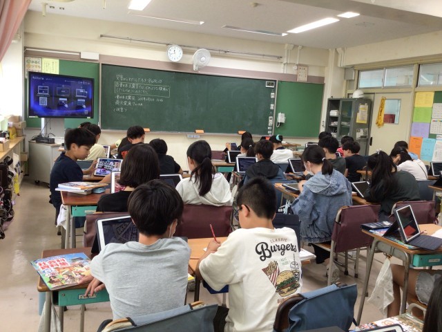 今日は1時間目は5年生の図工、2時間目は5年生の総合的な学習の時間、3時間目は1年生の国語、4時間目は6年生の社会科の授業を見ました。