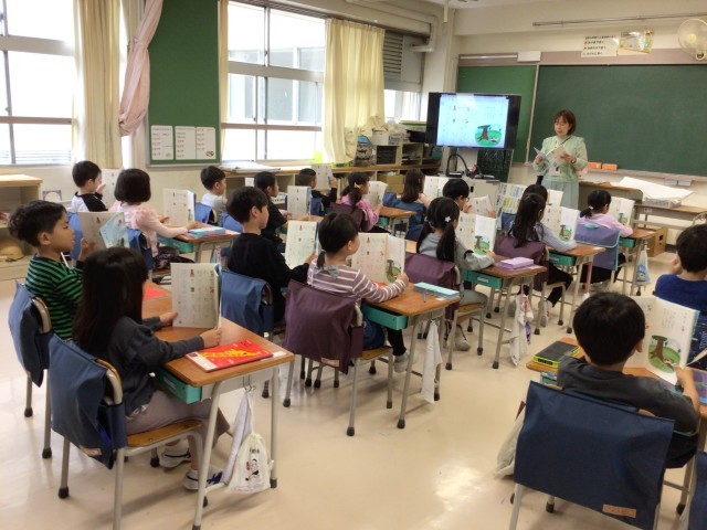 今日は2時間目に1年生の国語、3時間目に5年生の家庭科の授業を見ました。