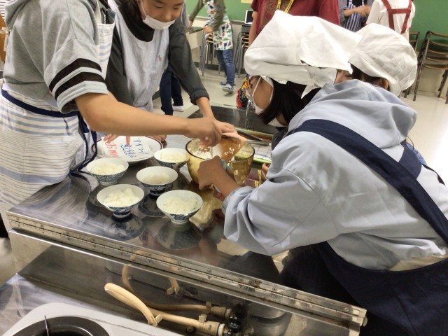 5年生は、保護者の方に安全管理のお手伝いをいただきながら、なべとアイラップを使いお米の炊き比べをしました。ありがとうございました。