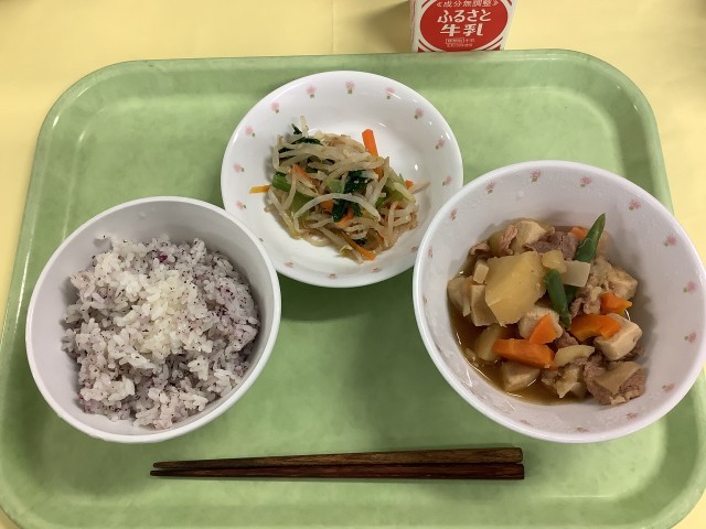 ゆかりごはん 肉じゃがうま煮 ごまあえ 牛乳