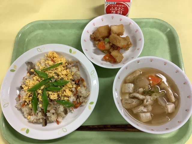 五目ずし じゃがいもの甘辛煮 吉野汁 牛乳