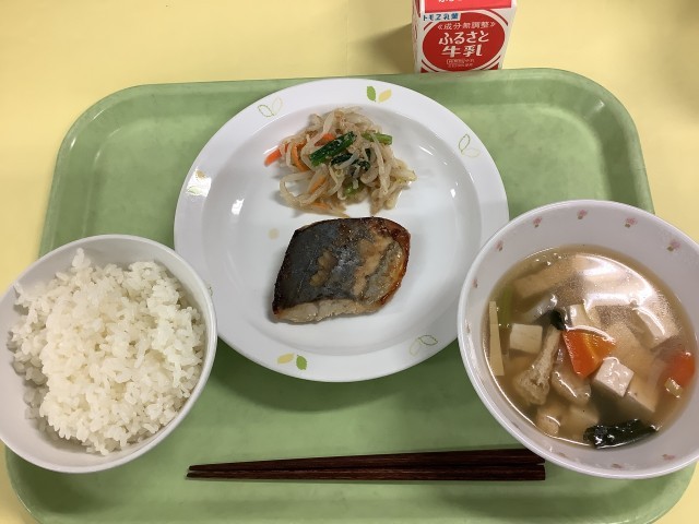 ごはん 魚の西京焼き 野菜のごまみそかけ 豆腐汁 牛乳