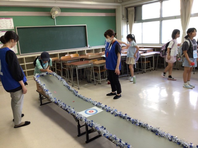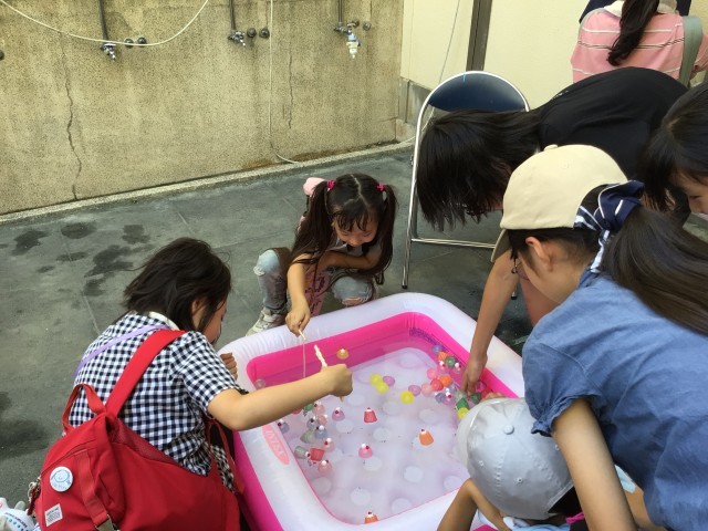 仲間る会のお父さんたちが作るわたあめ、野沢児童館さんのフィンガーカーリング・のざもぐボッチャ、青少年委員さんたちのぬり絵、PTAさんたちのキックターゲットやストラックアウト、スライム、エコキーホルダー、地域の福祉作業所さんの焼き菓子とおいしい楽しいお店が目白押しです。今年は6年生がゼリーすくいのお店運営のお手伝いをしています。頼もしい中丸の最高学年です。中丸小の子どもたちを支える教職員・保護者の方・地域の方のパワーが炸裂して熱い午後です。