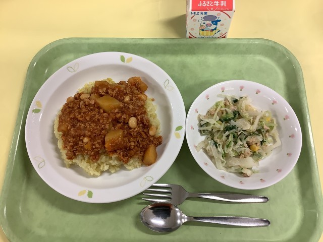 チリビーンズライス 水菜とツナのサラダ 牛乳