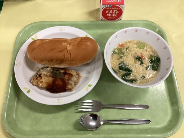 パインパン 魚のバーベキューソース 卵とチーズのふわふわスープ 牛乳